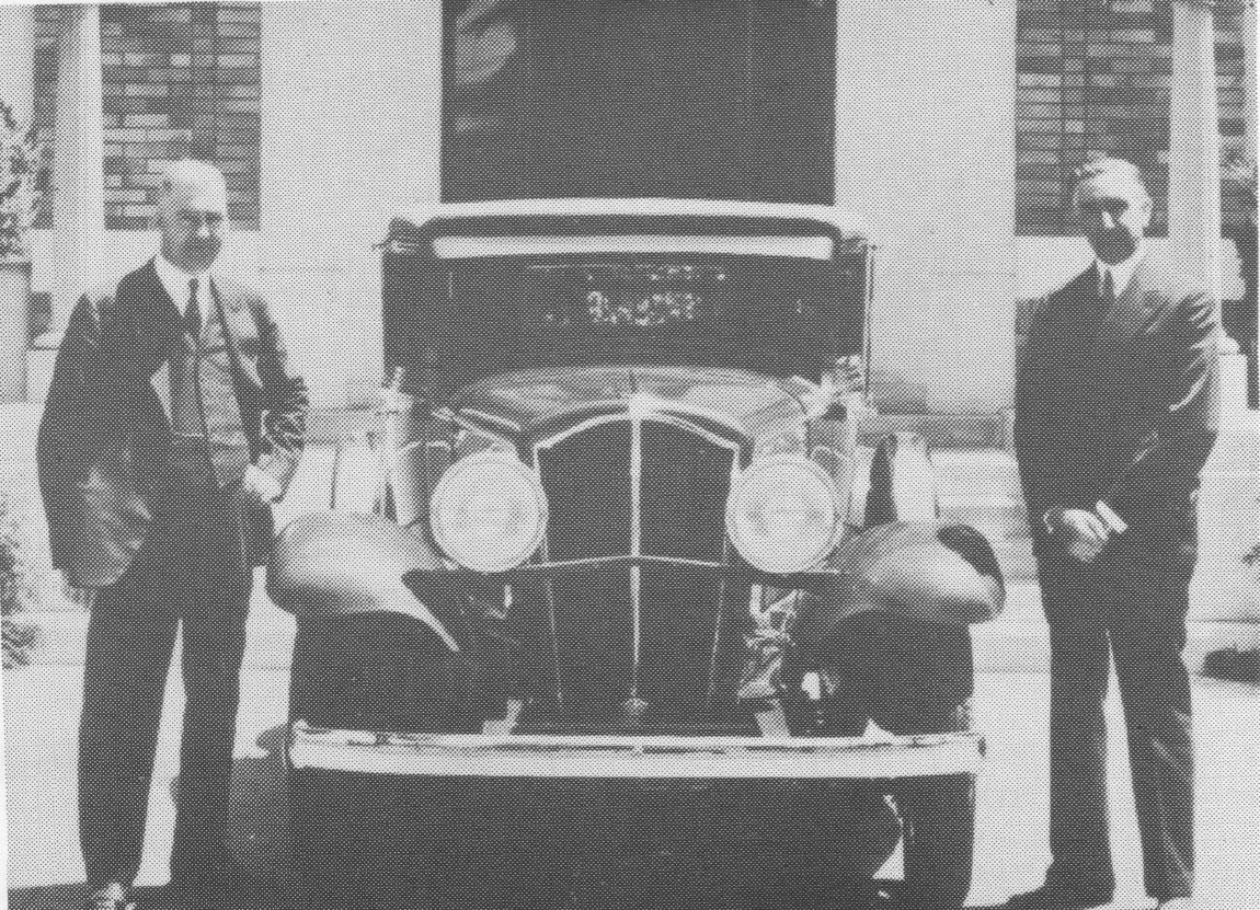Origial Factory Photogaph of 1931 DeVaux model 6-75 Cutom Coupe. Picture was taken near the Oakland, California plant. On the left is Colonel Elbert J. Hall and on the right is Norman DeVaux founders of the DeVaux Motors Corporation.