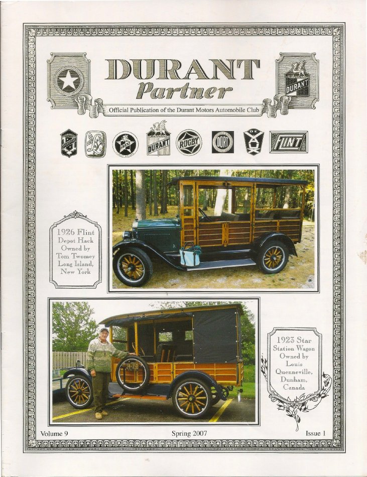 Durant Motors Automobile Club quarterly publication Volume 9, Issue 1 published in the Spring of 2007. Magazine was published for the benefit of the membership covering items of interest, classified items for sale, events and technical articles on the maintenance and restoration of the cars produced by and associated with Durant Motors Inc.